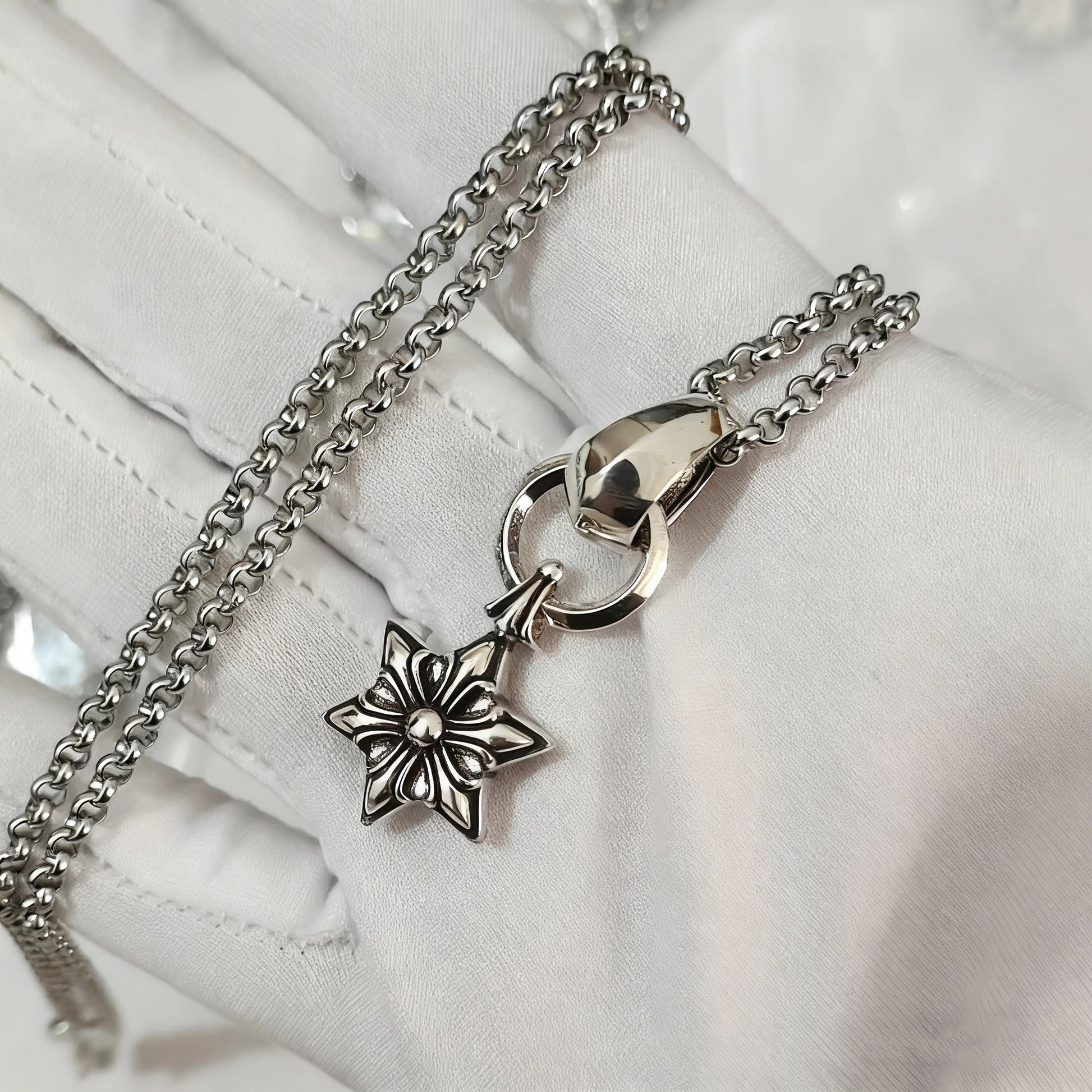 Color: One set of pentagram necklace, one set of large sword, one set of skull, one set of large star, one set of small star, one set of anchor, three piece set of sword, one set of horseshoe